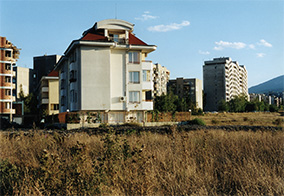 It is like a tradition here, almost erveryone owns a flat or a house. Before only the construction industry was a public enterprise, the spaces between the blokcs were designed by landscape architects, the state was responsible for the construction of buildings and the spaces inbetween. Now they try to make the biggest profit of the site, maybe not the architects, but the owners, the result is an extreme densification without any regards for the neighbours or the area as a whole. Interview, 2001