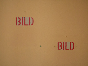schein kamen »Bild«-Markierungen, die die Bilder davor bewahren sollten, unbefugt entwendet zu werden. Wenn die Bilder nach ›Programmende‹ verschwinden, tritt das Wort Bild als eine Art Testbild an seine Stelle.